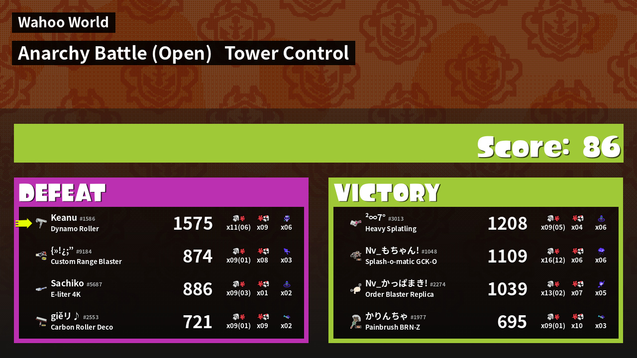 | Mode | Tower Control - Anarchy Battle (Open) | ||