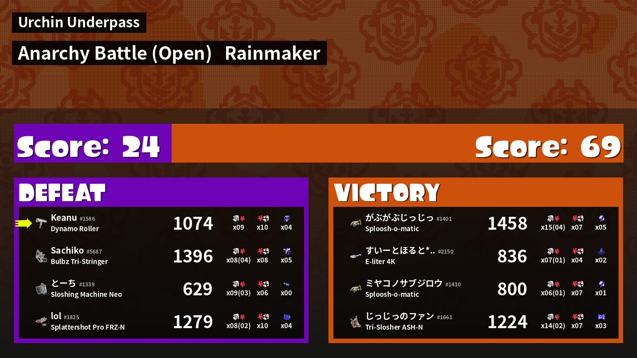| Mode | Rainmaker - Anarchy Battle (Open) | ||