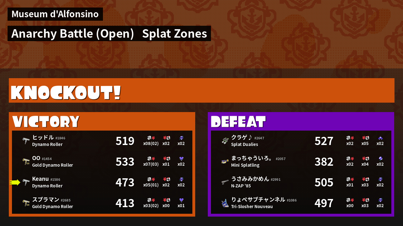 | Mode | Splat Zones - Anarchy Battle (Open) | ||