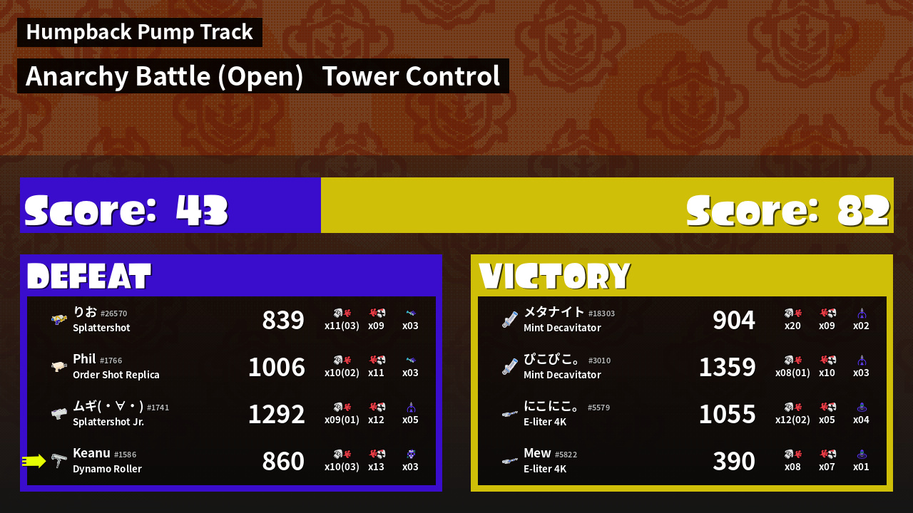 | Medals | Record-Score Setter #1 Splat Assister #1 Tacticooler User | ||