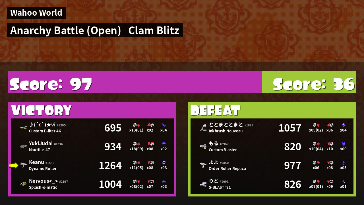 | Mode | Clam Blitz - Anarchy Battle (Open) | ||