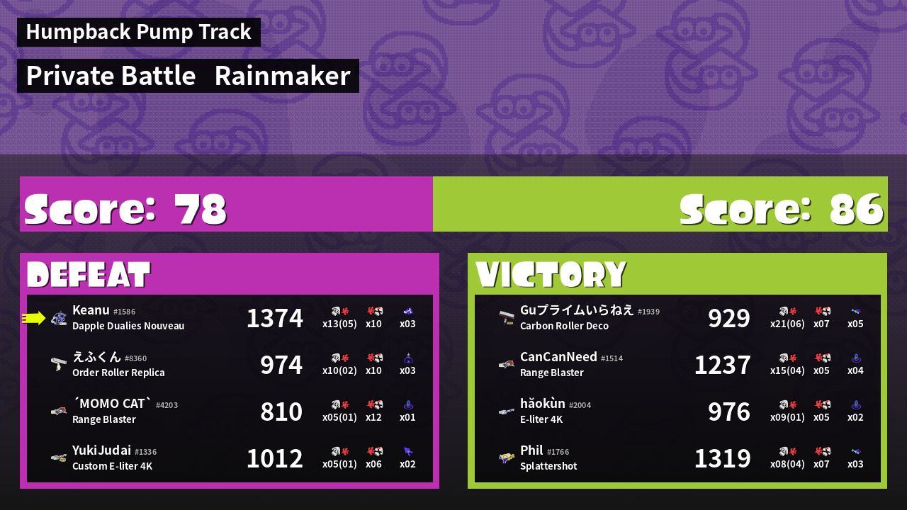 | Medals | #1 Overall Splatter #1 Turf Inker #1 Enemy Splatter | ||