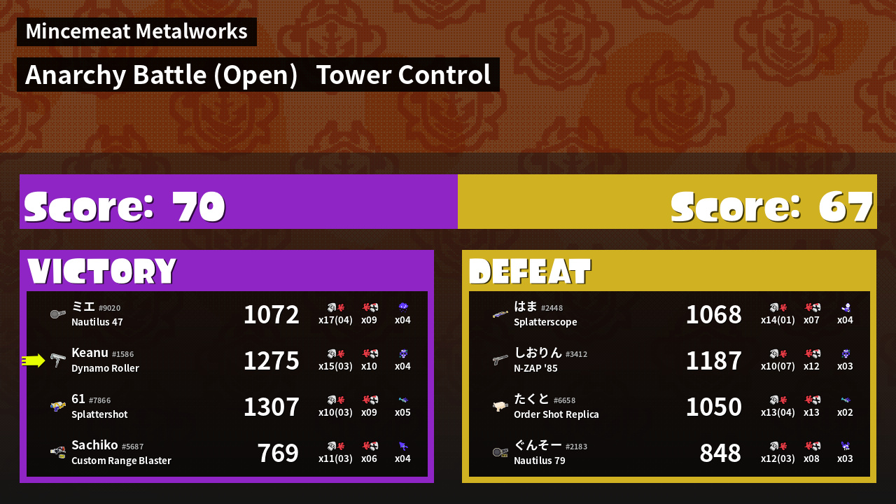| Mode | Tower Control - Anarchy Battle (Open) | ||