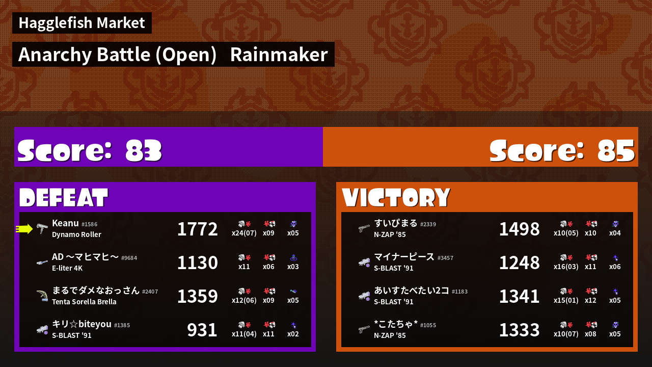 | Mode | Rainmaker - Anarchy Battle (Open) | ||