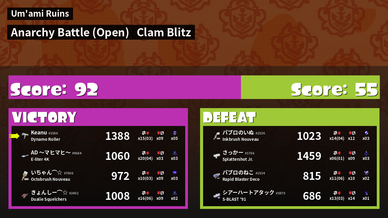 | Mode | Clam Blitz - Anarchy Battle (Open) | ||