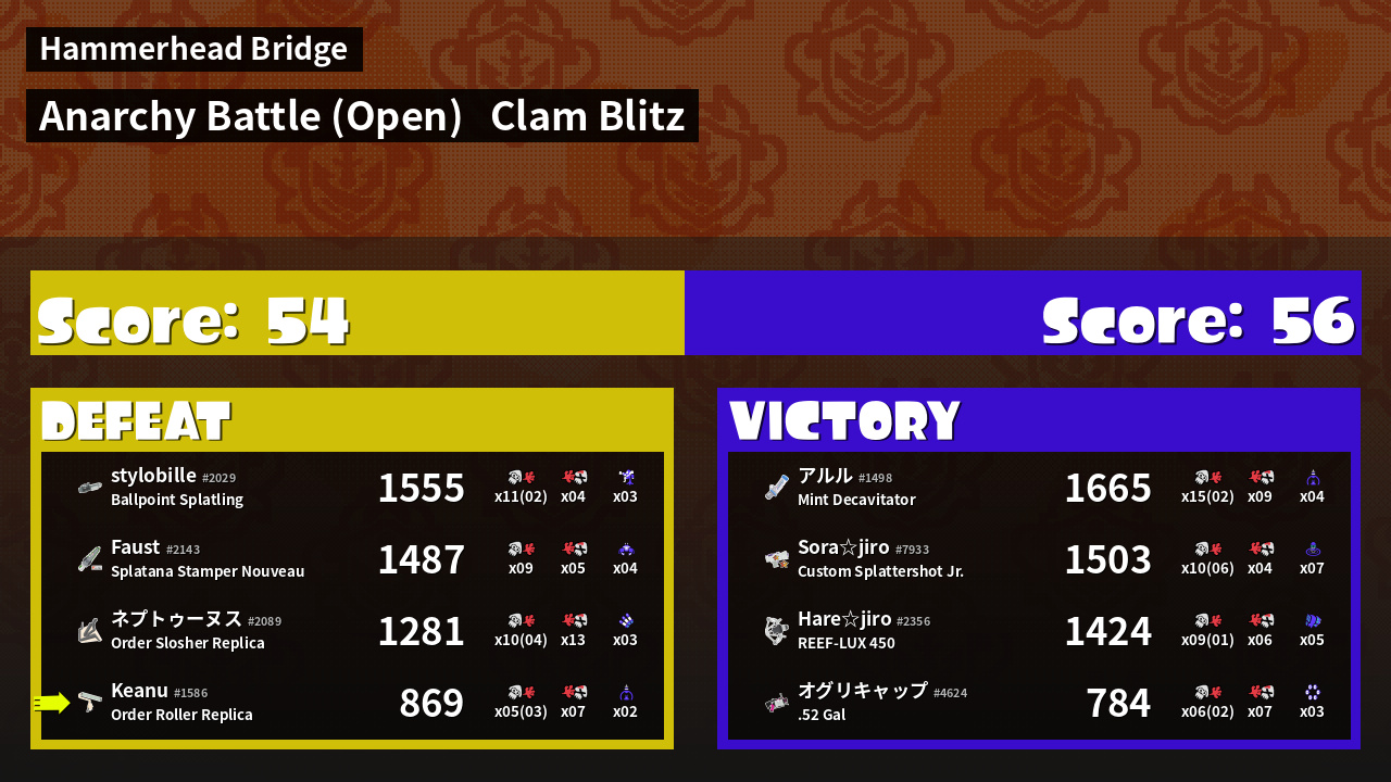 | Mode | Clam Blitz - Anarchy Battle (Open) | ||