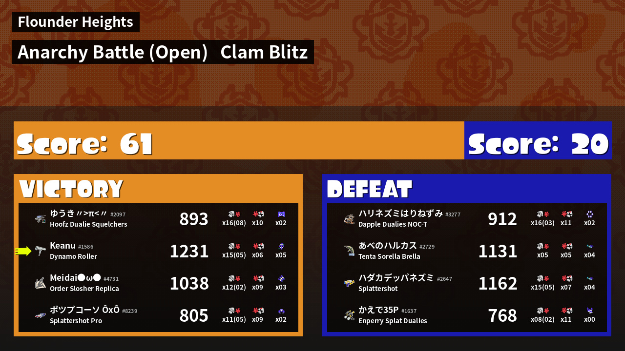 | Mode | Clam Blitz - Anarchy Battle (Open) | ||