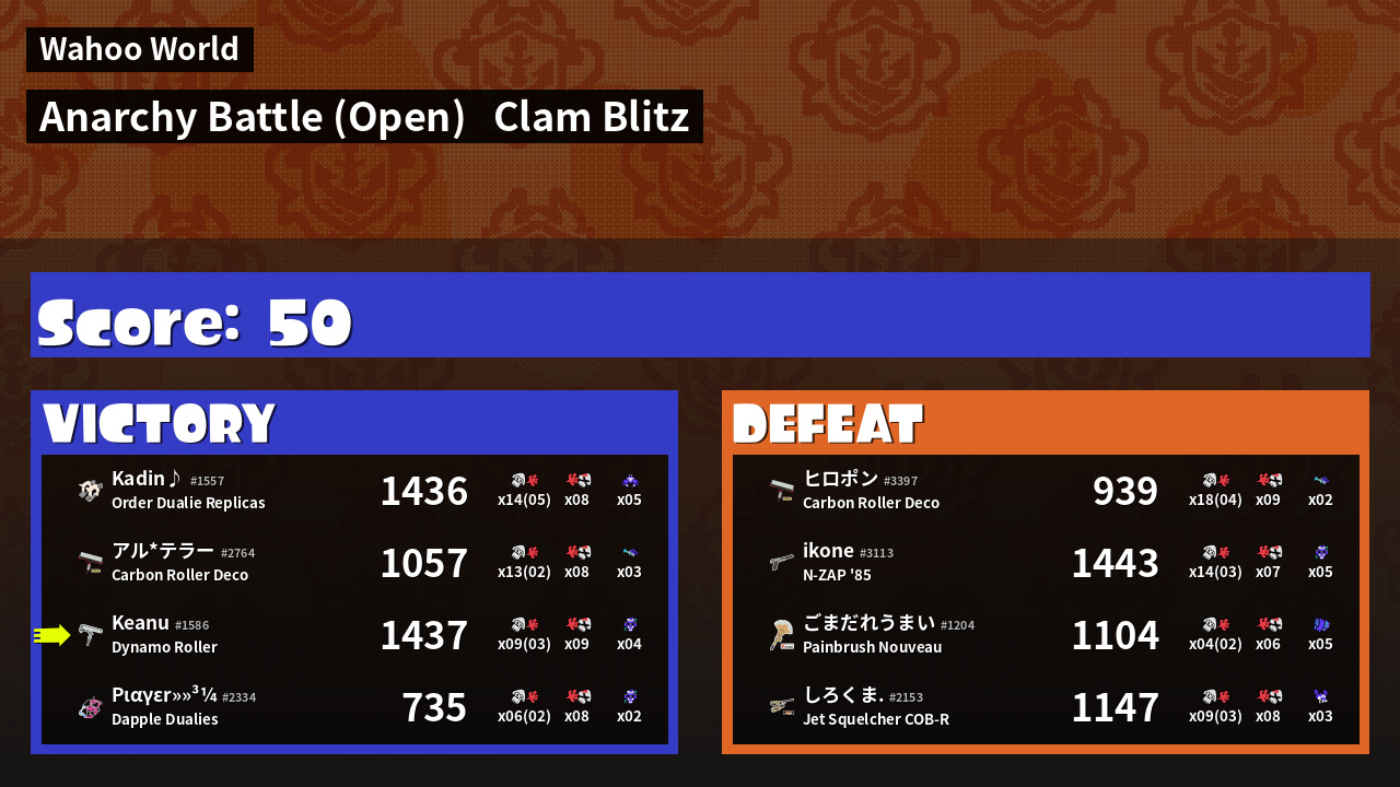 | Mode | Clam Blitz - Anarchy Battle (Open) | ||