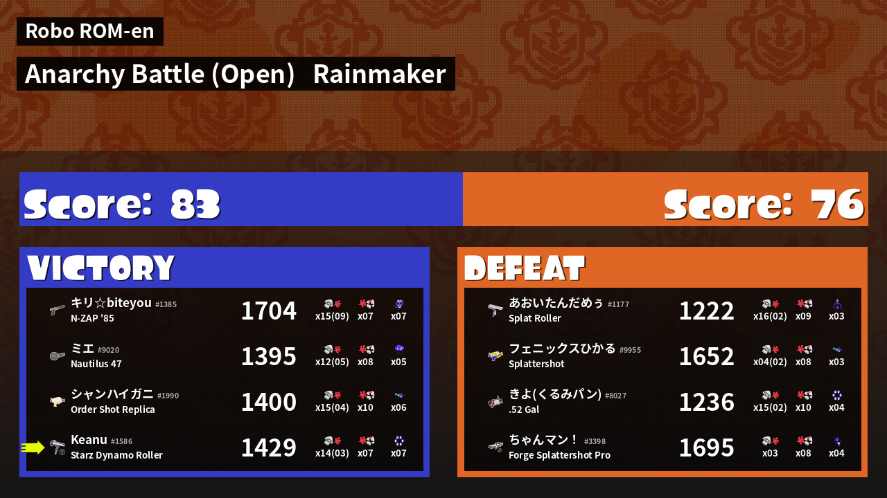| Mode | Rainmaker - Anarchy Battle (Open) | ||