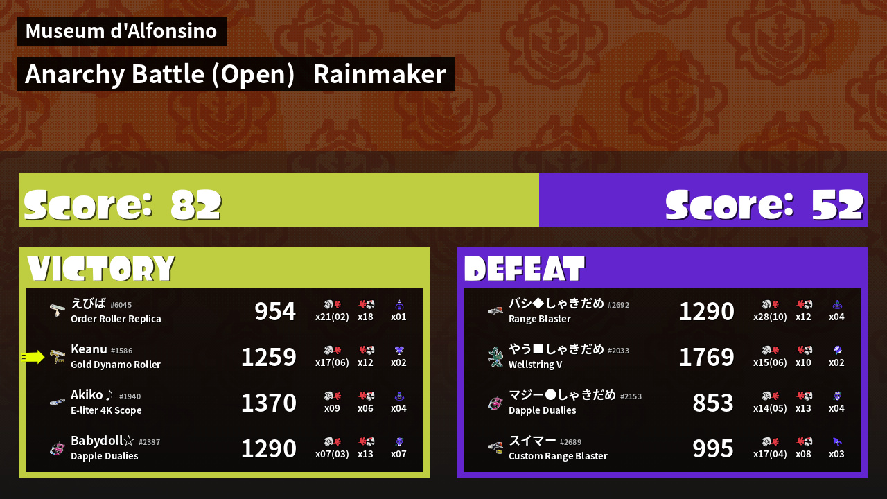 | Mode | Rainmaker - Anarchy Battle (Open) | ||