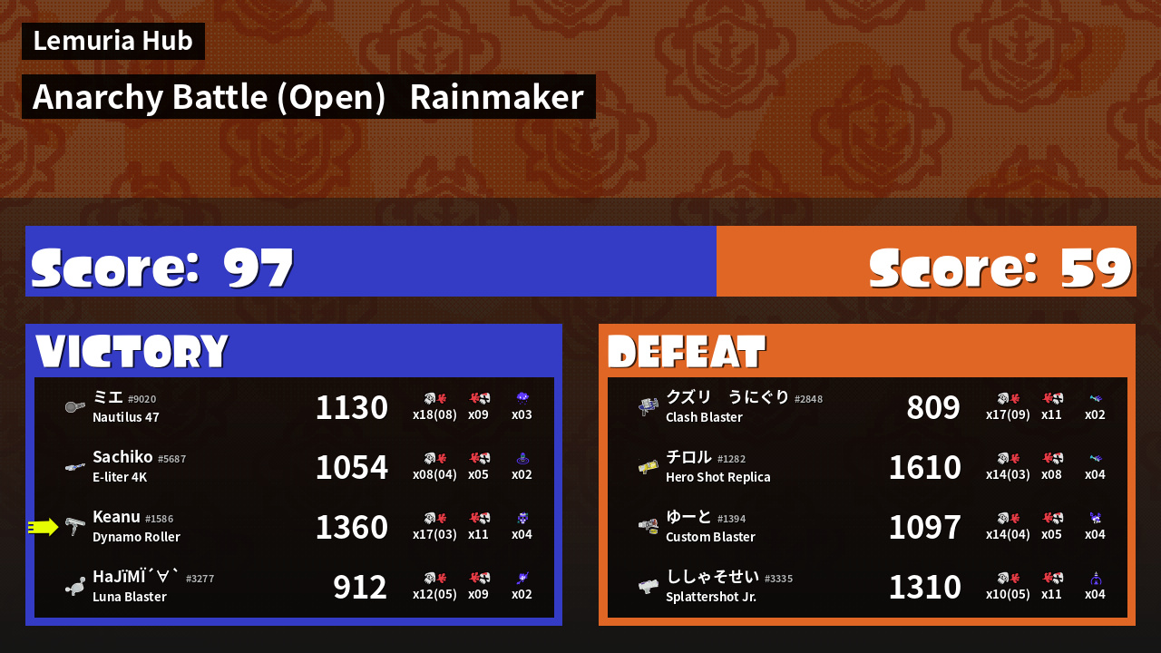 | Mode | Rainmaker - Anarchy Battle (Open) | ||