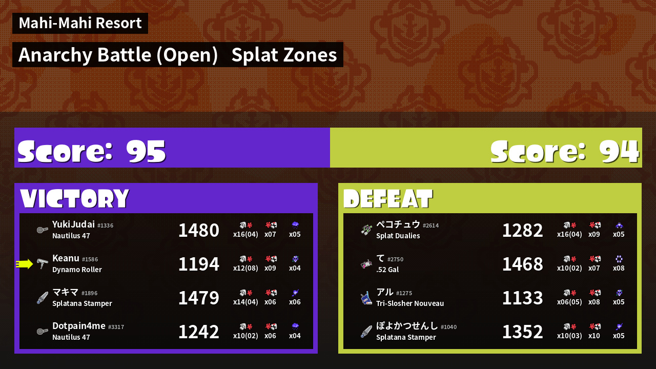 | Mode | Splat Zones - Anarchy Battle (Open) | ||