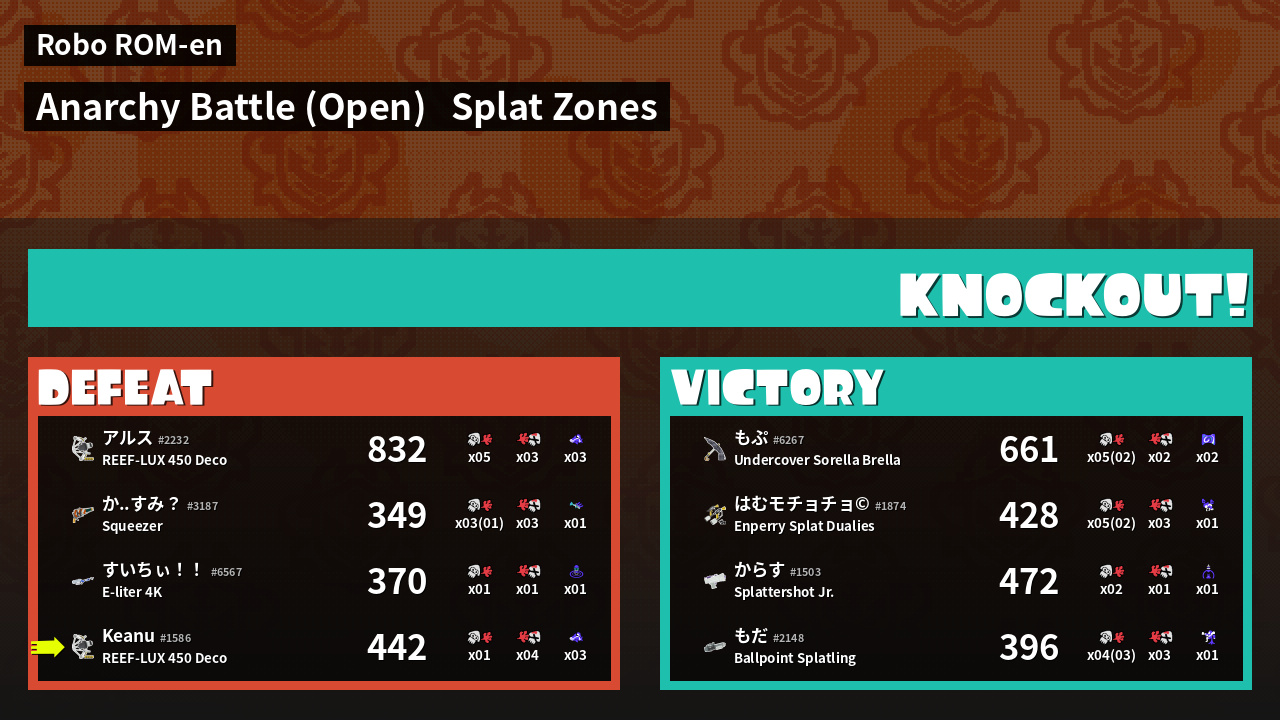 | Mode | Splat Zones - Anarchy Battle (Open) | ||