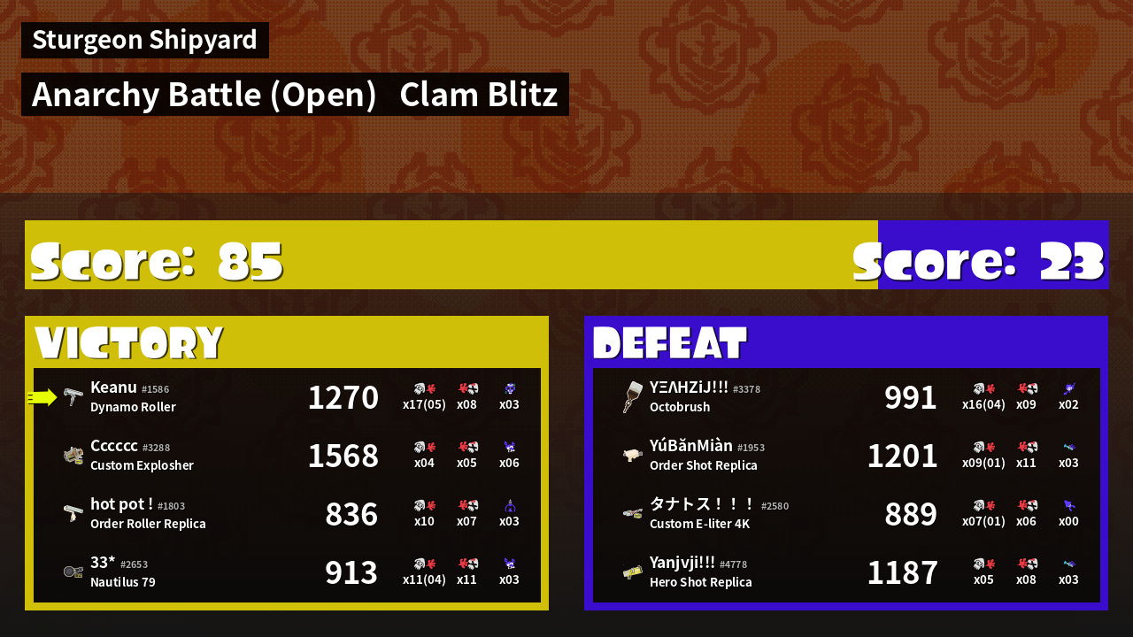 | Mode | Clam Blitz - Anarchy Battle (Open) | ||