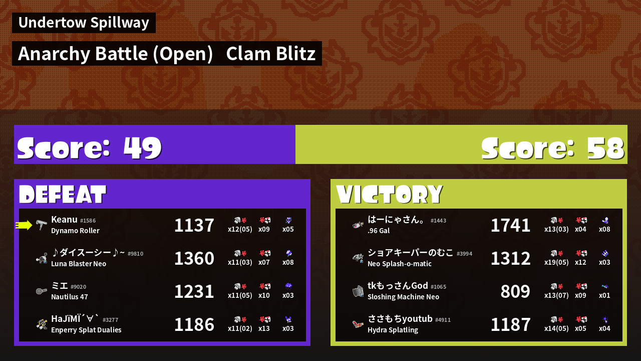 | Mode | Clam Blitz - Anarchy Battle (Open) | ||