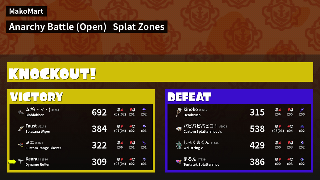 | Mode | Splat Zones - Anarchy Battle (Open) | ||