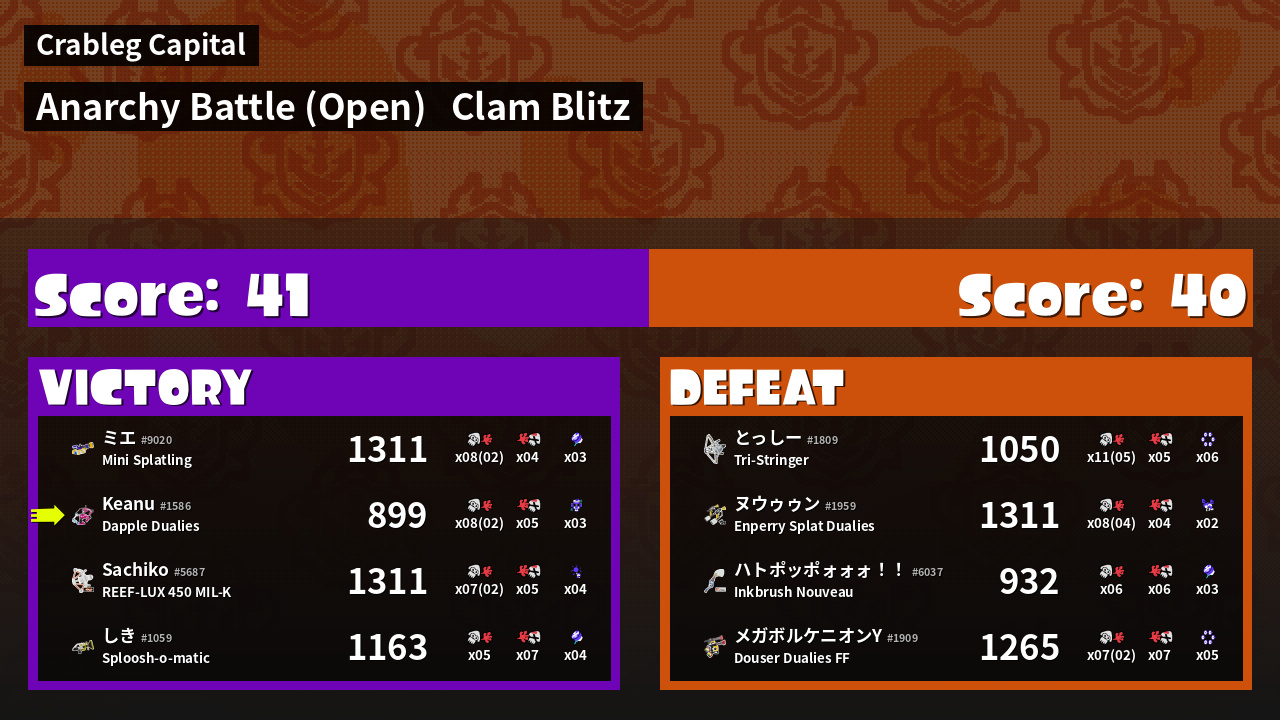 | Mode | Clam Blitz - Anarchy Battle (Open) | ||