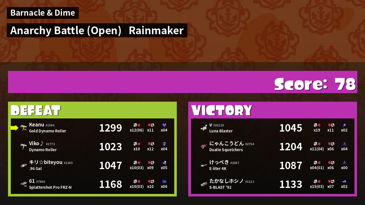 | Mode | Rainmaker - Anarchy Battle (Open) | ||