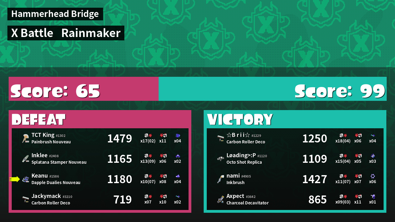 | Mode | Rainmaker - X Battle | ||