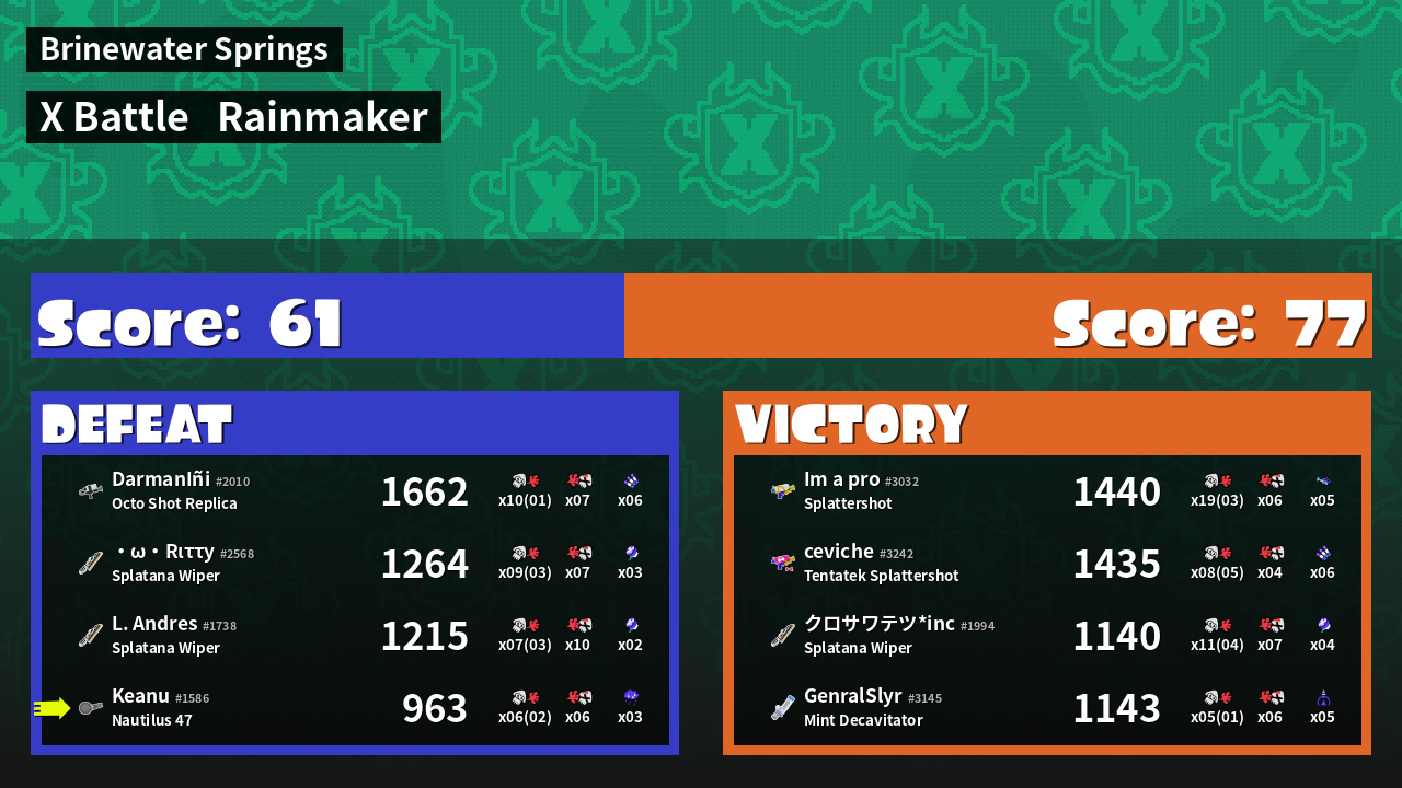 | Weapon | Nautilus 47 ( Point Sensor / Ink Storm) | ||