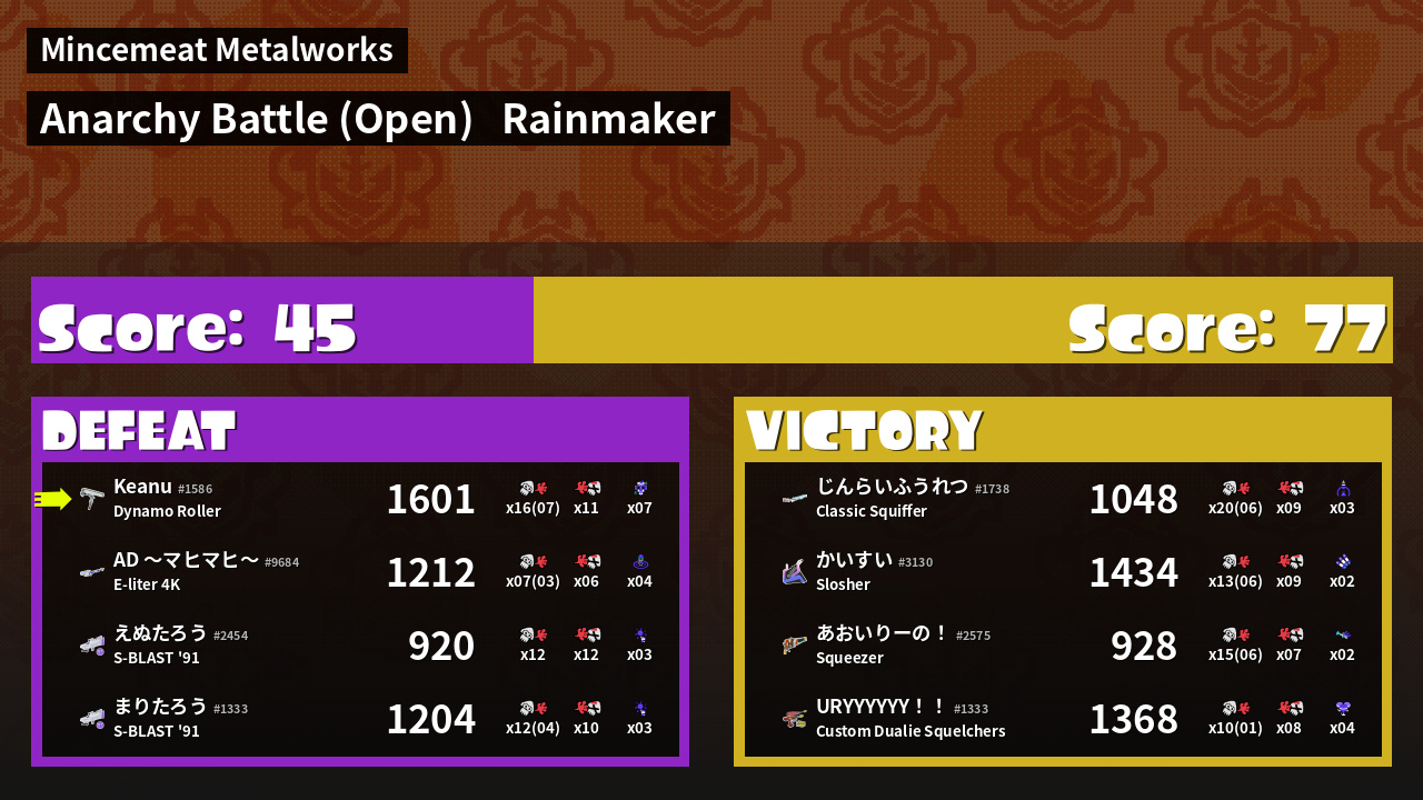 | Mode | Rainmaker - Anarchy Battle (Open) | ||