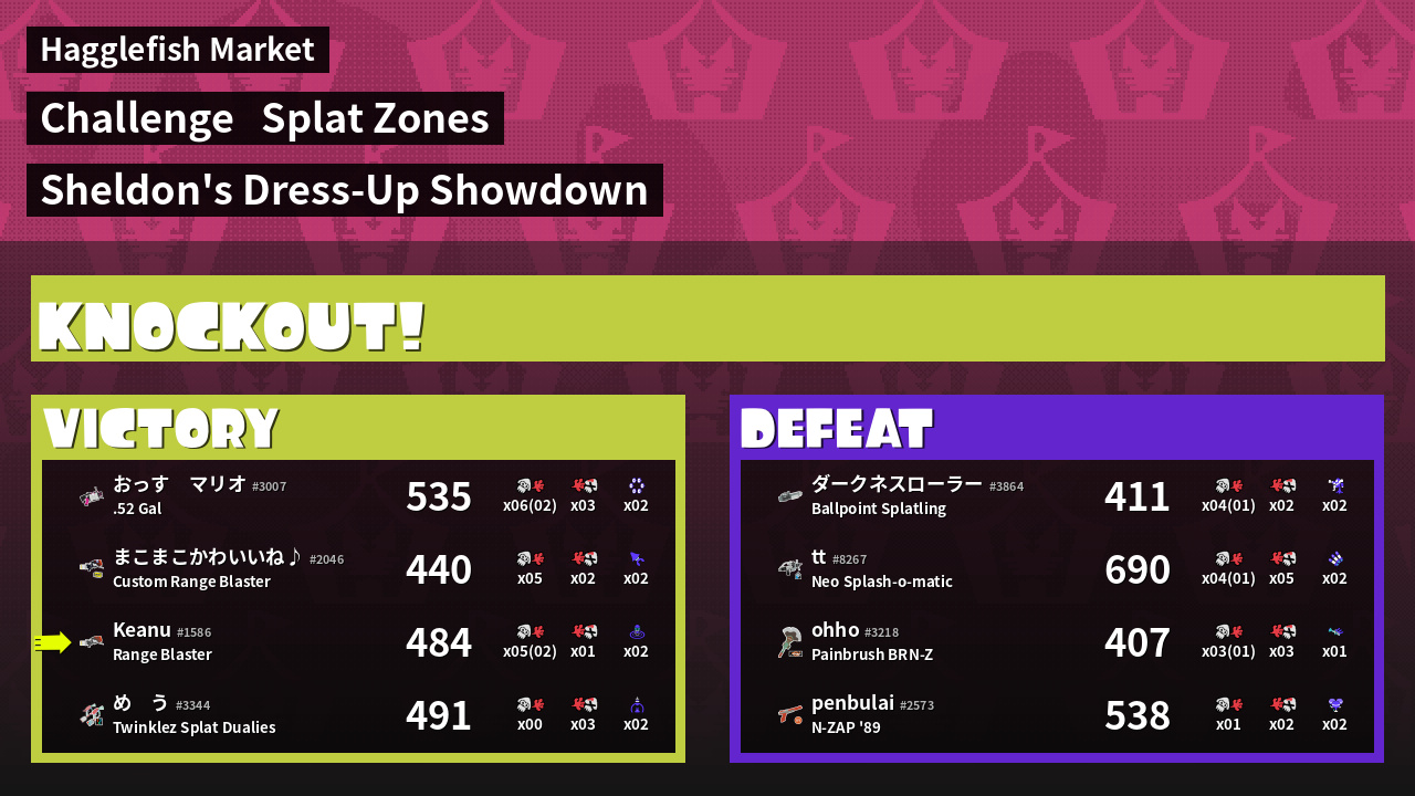 | Medals | #1 Popular Target #1 Splat Assister #1 Damage Taker | ||
