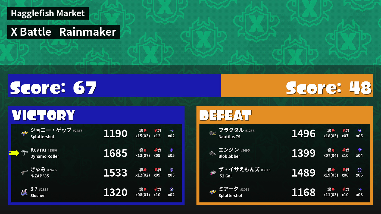 | Weapon | Dynamo Roller ( Sprinkler / Tacticooler) | ||