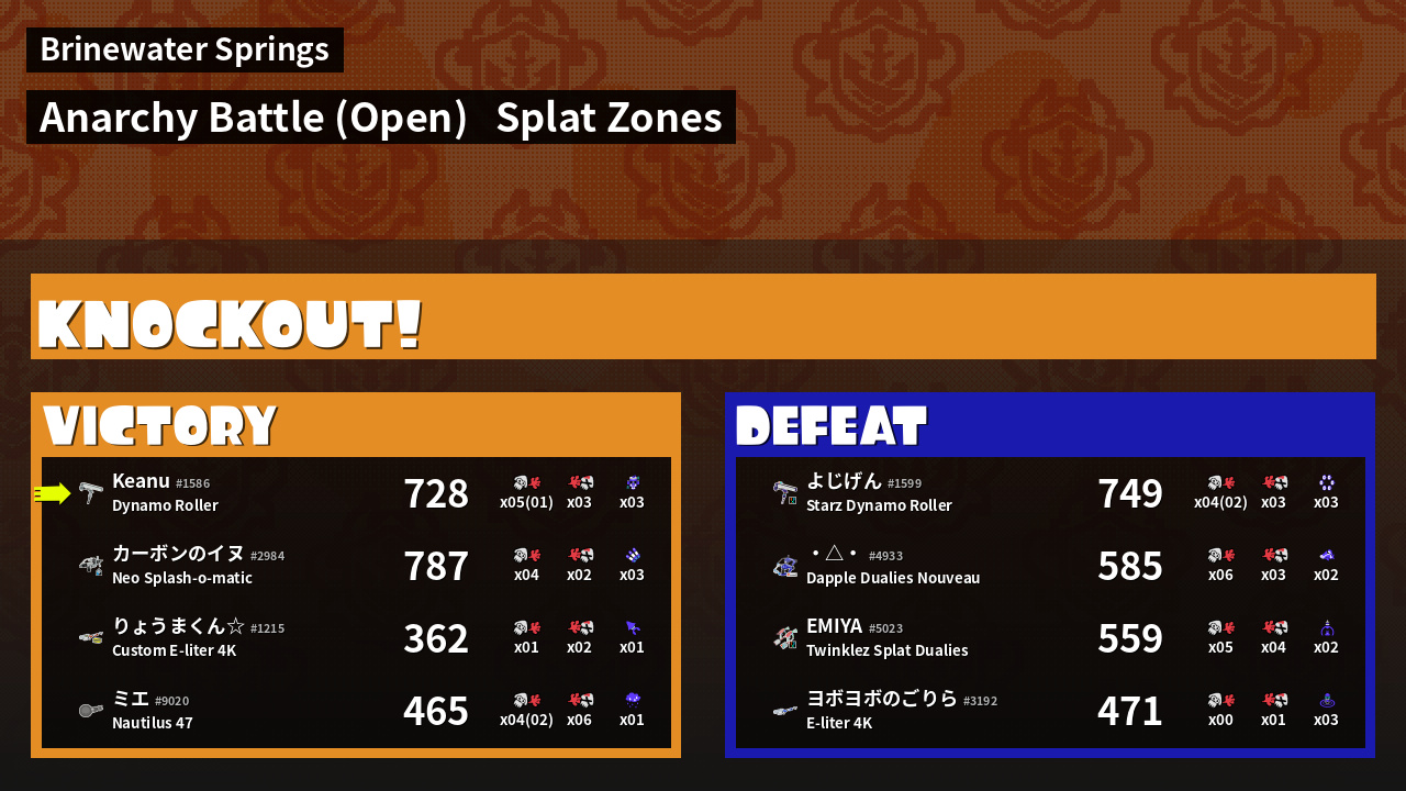 | Mode | Splat Zones - Anarchy Battle (Open) | ||