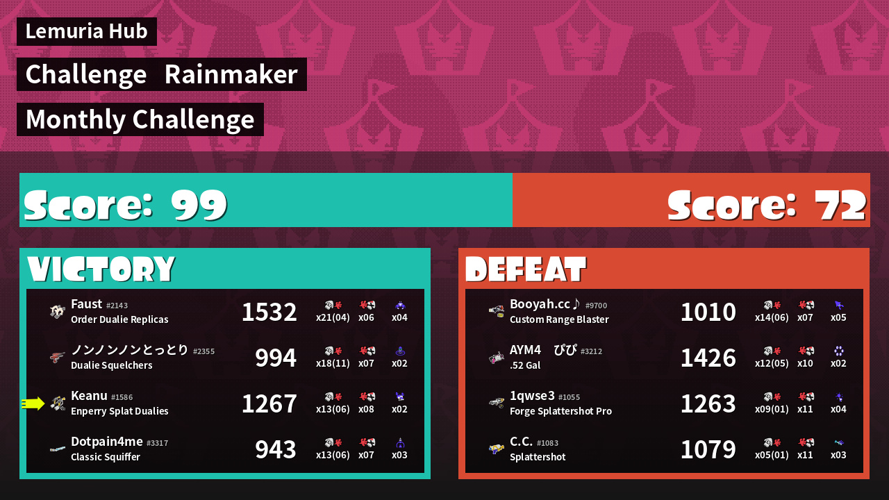| Weapon | Enperry Splat Dualies ( Curling Bomb / Triple Splashdown) | ||