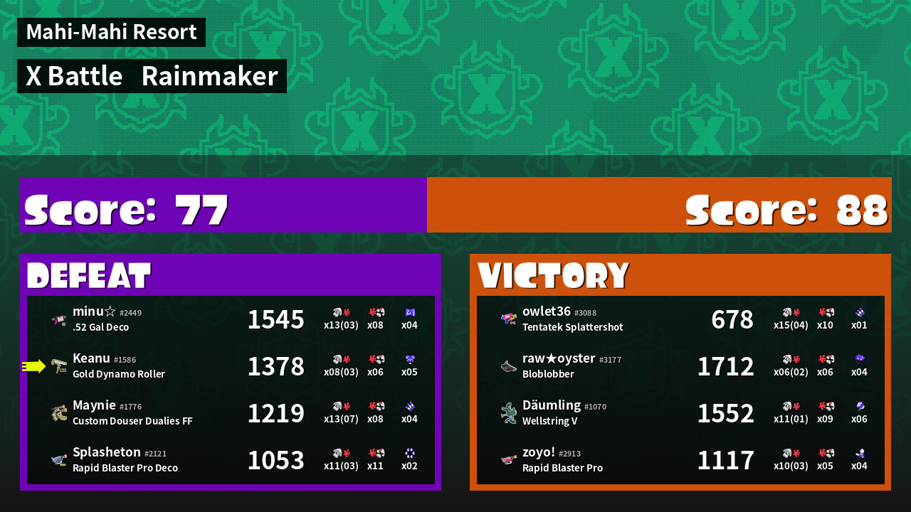 | Weapon | Gold Dynamo Roller ( Splat Bomb / Super Chump) | ||