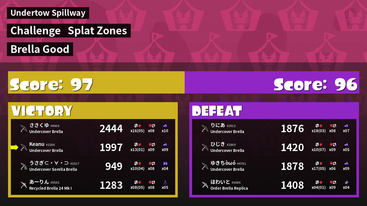 | Weapon | Undercover Brella ( Ink Mine / Reefslider) | ||
