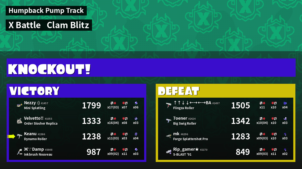 | Weapon | Dynamo Roller ( Sprinkler / Tacticooler) | ||