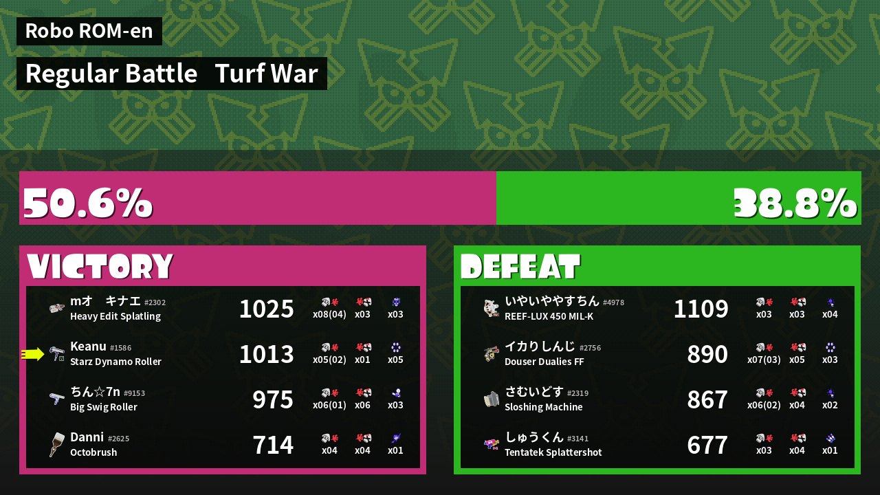 | Medals | #1 Enemy-Base Inker #1 Damage Taker #1 Ink Consumer | ||