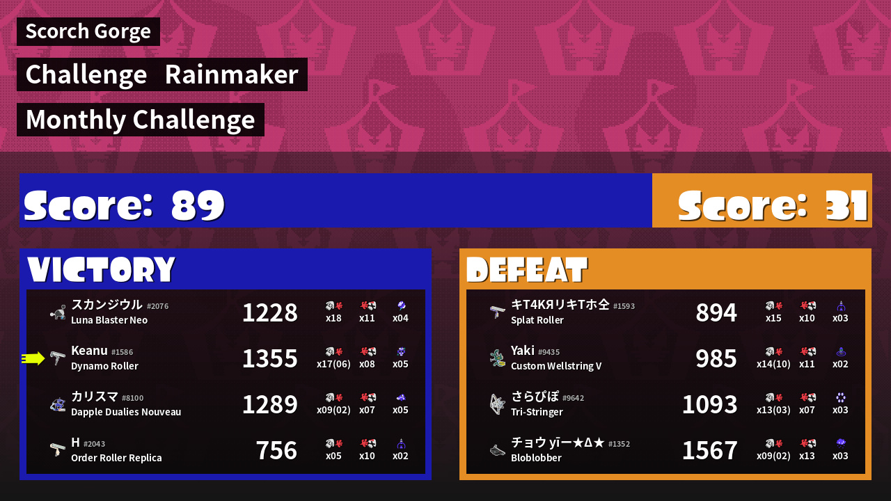 | Medals | #1 Turf Inker #1 Splat Assister #1 Rainmaker Stopper | ||