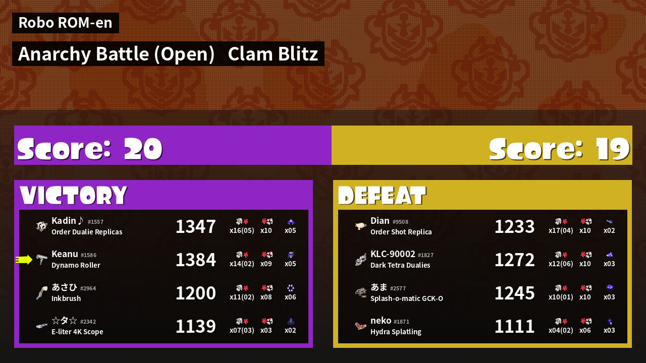 | Mode | Clam Blitz - Anarchy Battle (Open) | ||