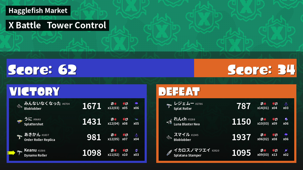 | Mode | Tower Control - X Battle | ||