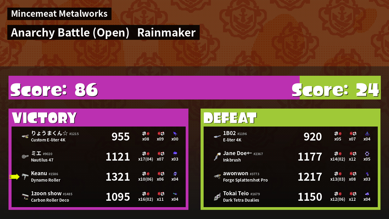 | Medals | #1 Turf Inker #1 Splat Assister #1 Rainmaker Stopper | ||