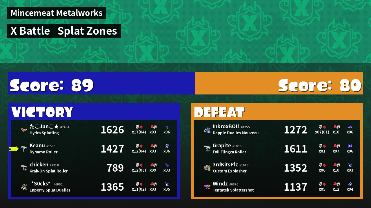 | Medals | #1 Splat Assister #1 Damage Taker #1 Ink Consumer | ||