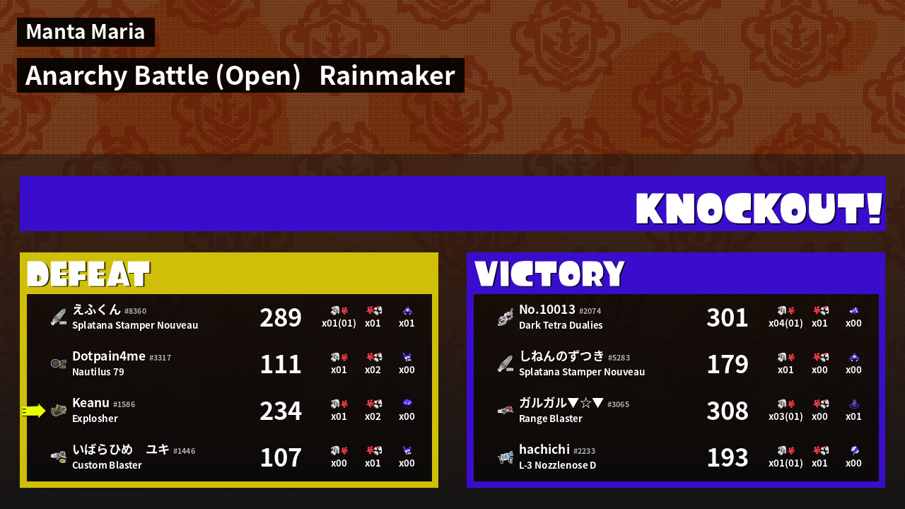 | Mode | Rainmaker - Anarchy Battle (Open) | ||