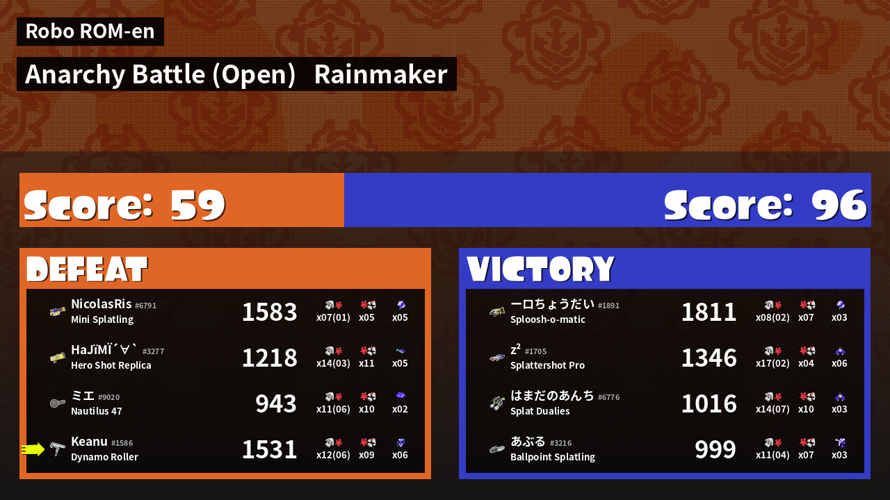 | Mode | Rainmaker - Anarchy Battle (Open) | ||
