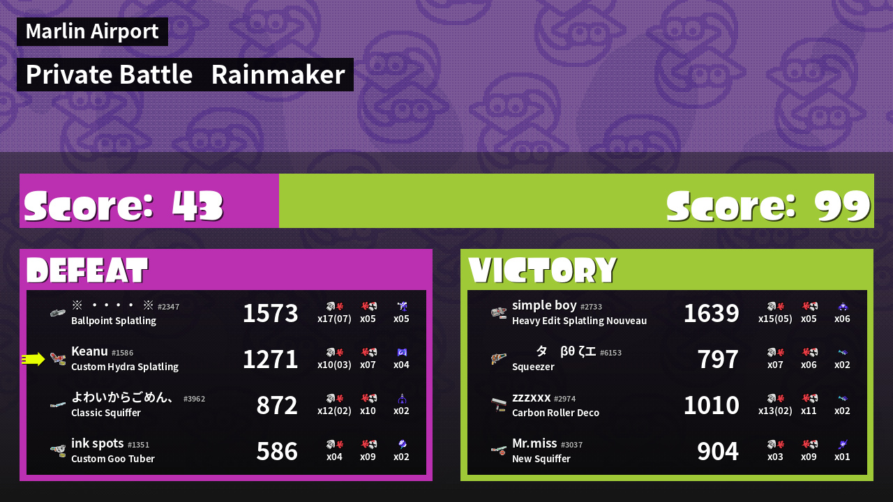 | Weapon | Custom Hydra Splatling ( Ink Mine / Splattercolor Screen) | ||