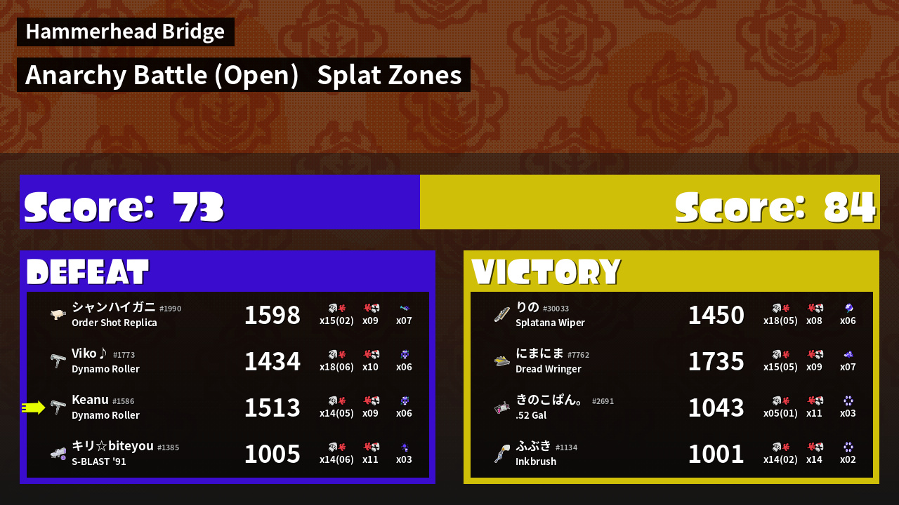 | Mode | Splat Zones - Anarchy Battle (Open) | ||