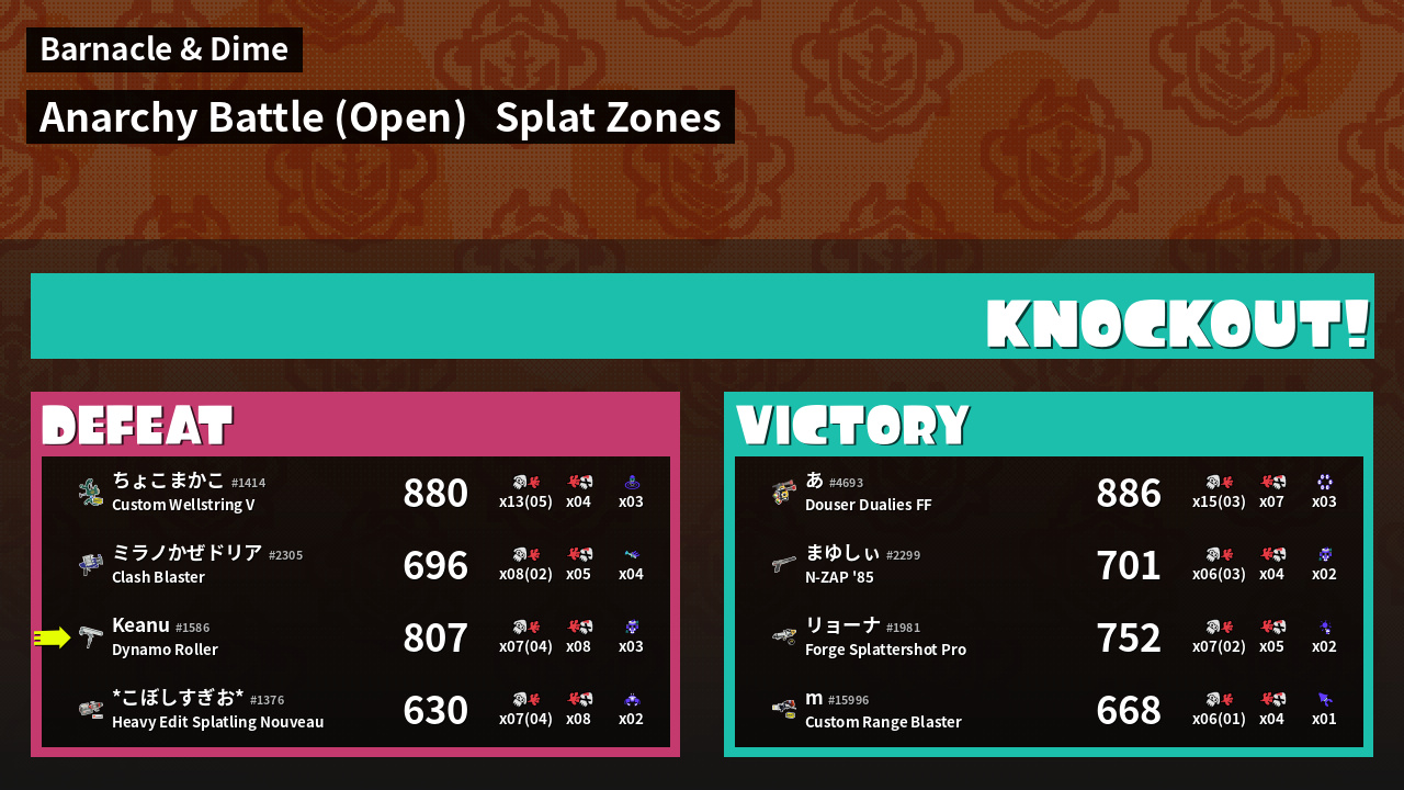 | Mode | Splat Zones - Anarchy Battle (Open) | ||