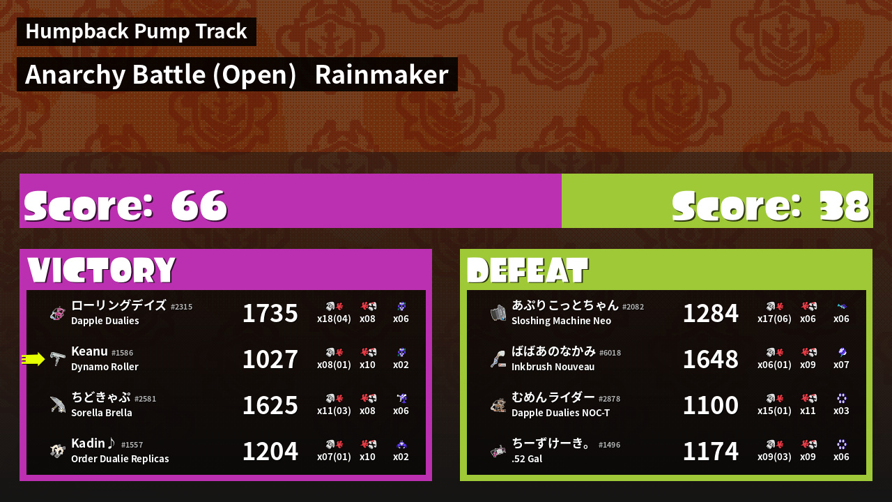 | Mode | Rainmaker - Anarchy Battle (Open) | ||