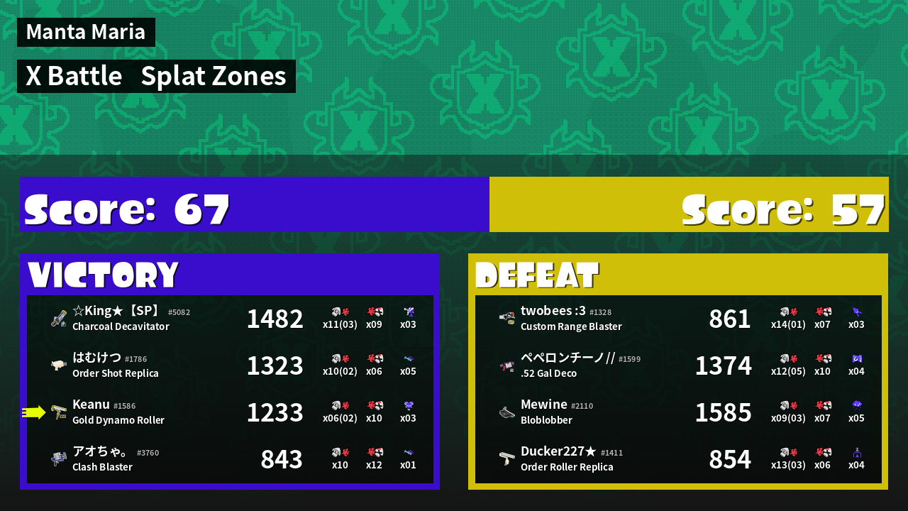 | Mode | Splat Zones - X Battle | ||
