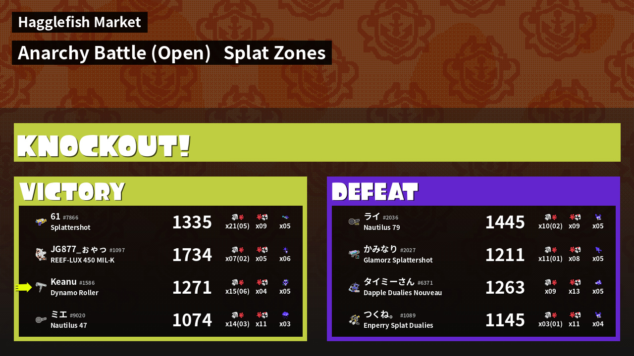 | Mode | Splat Zones - Anarchy Battle (Open) | ||