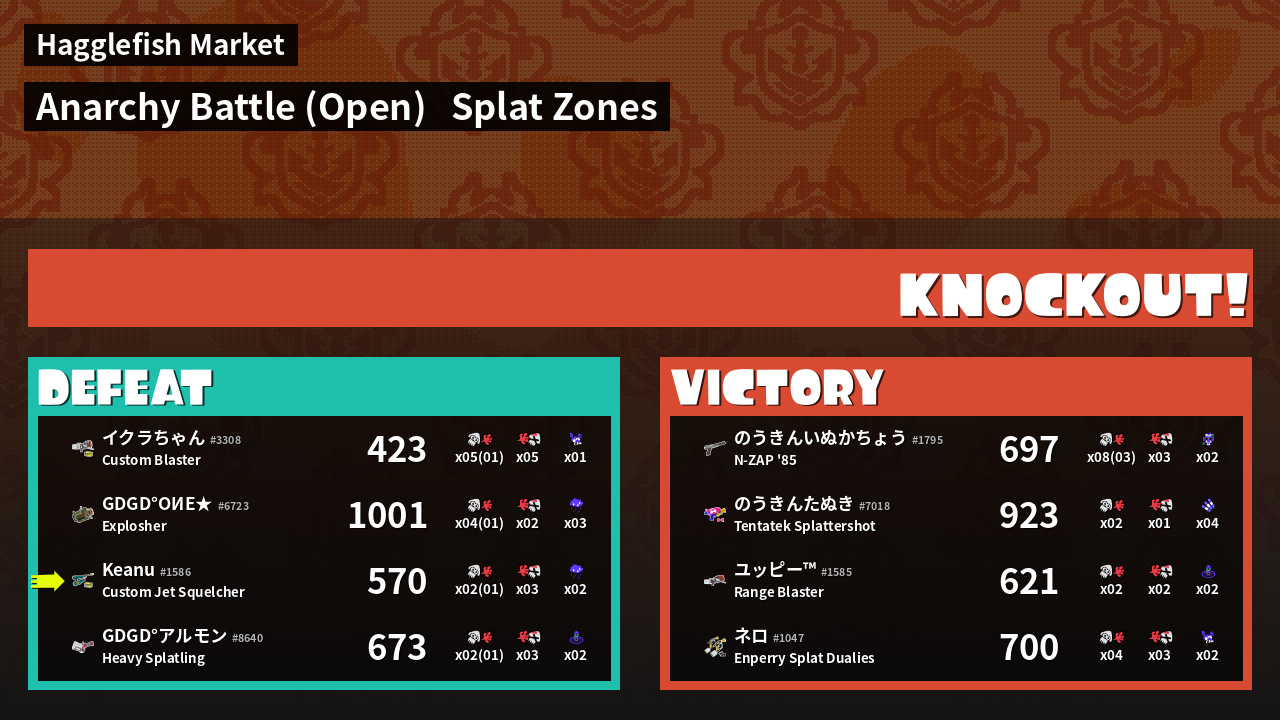 | Mode | Splat Zones - Anarchy Battle (Open) | ||