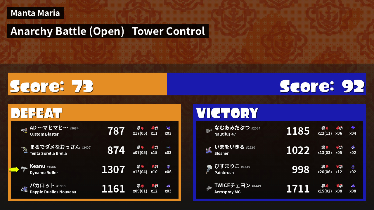 | Mode | Tower Control - Anarchy Battle (Open) | ||