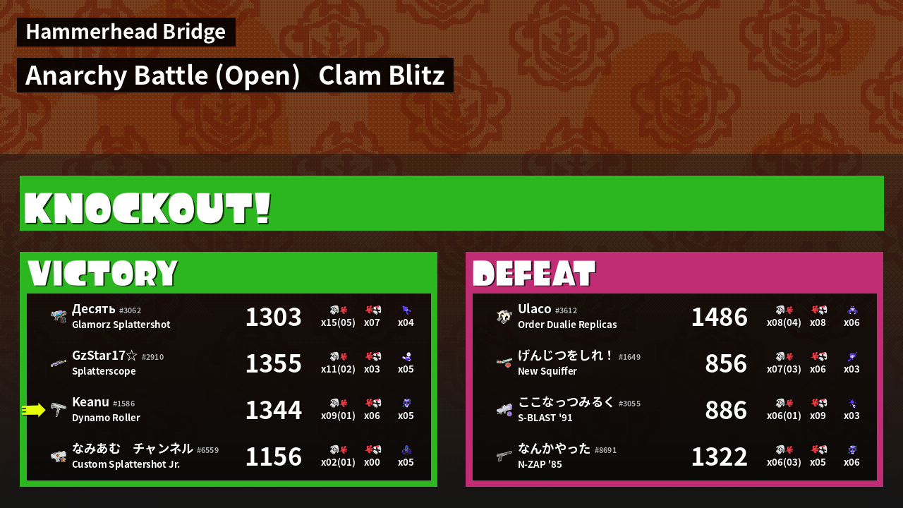 | Mode | Clam Blitz - Anarchy Battle (Open) | ||
