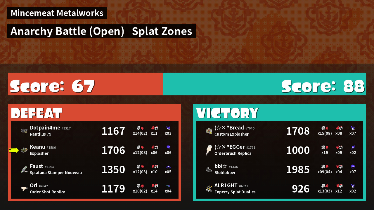 | Mode | Splat Zones - Anarchy Battle (Open) | ||